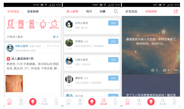 如何解决医生群体实现社交的需求成为创业“医联”的出发点。医联是一款专属于医生的社交App。在医联,用户均为通过实名认证的在职医生,在医生联盟内,用户可以通过与其他的行业精英分享专业知识,经验和见解,为彼此不断提供高质量的内容。