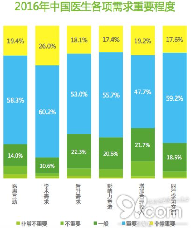 艾瑞分析指出,在医生的诸多需求中,通过互联网获取医学资讯和学习资料等学术需求是医生最为重要的需求,也是医生认为互联网医生服务的价值所在。